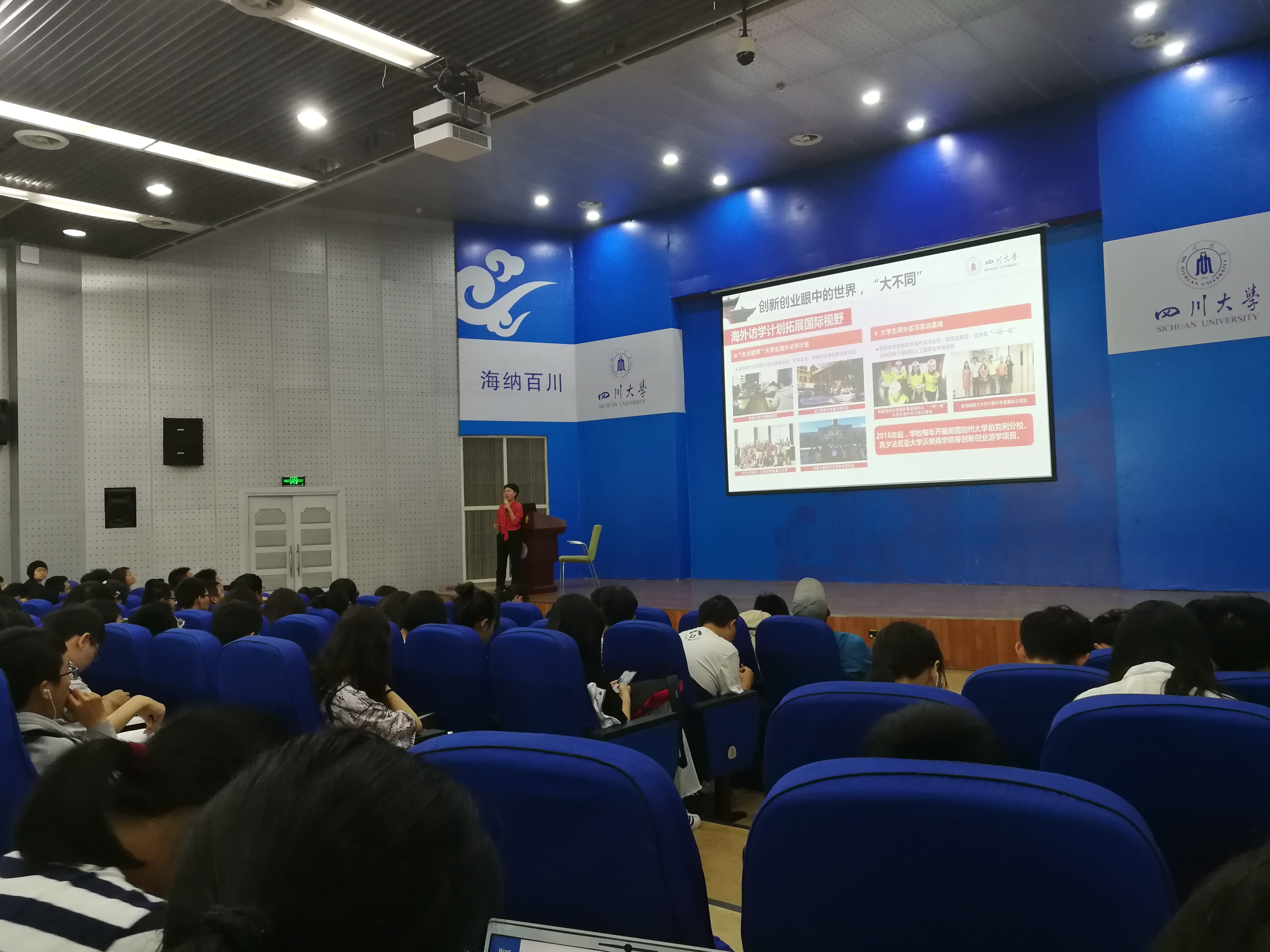 2019年5月31日上午,四川大学创新创业工作领导小组办公室副主任吴迪老师在江安水上报告厅为我院2017级、2018级本科生带来“四川大学学生创新创业活动指南”的主题讲座。
