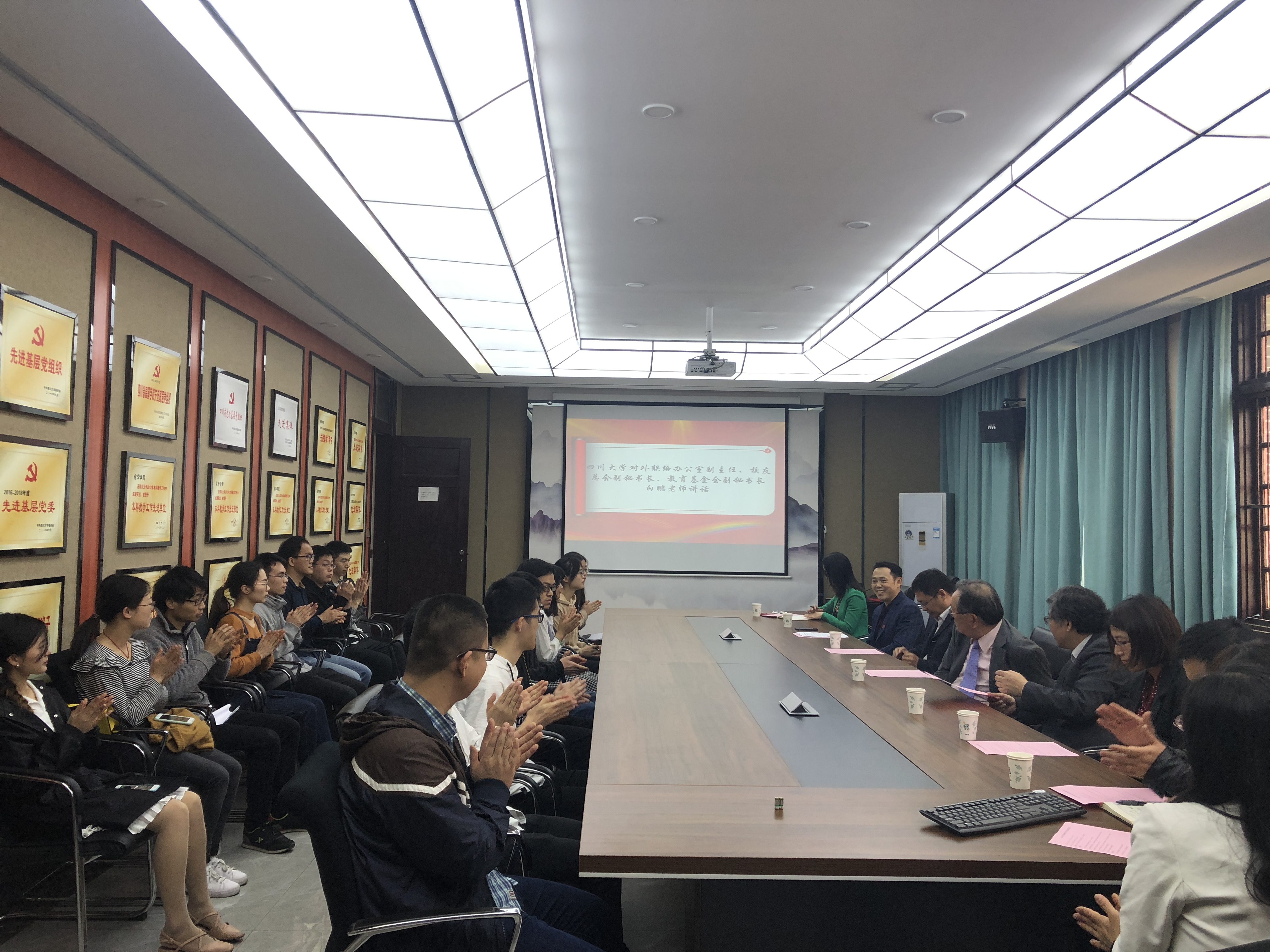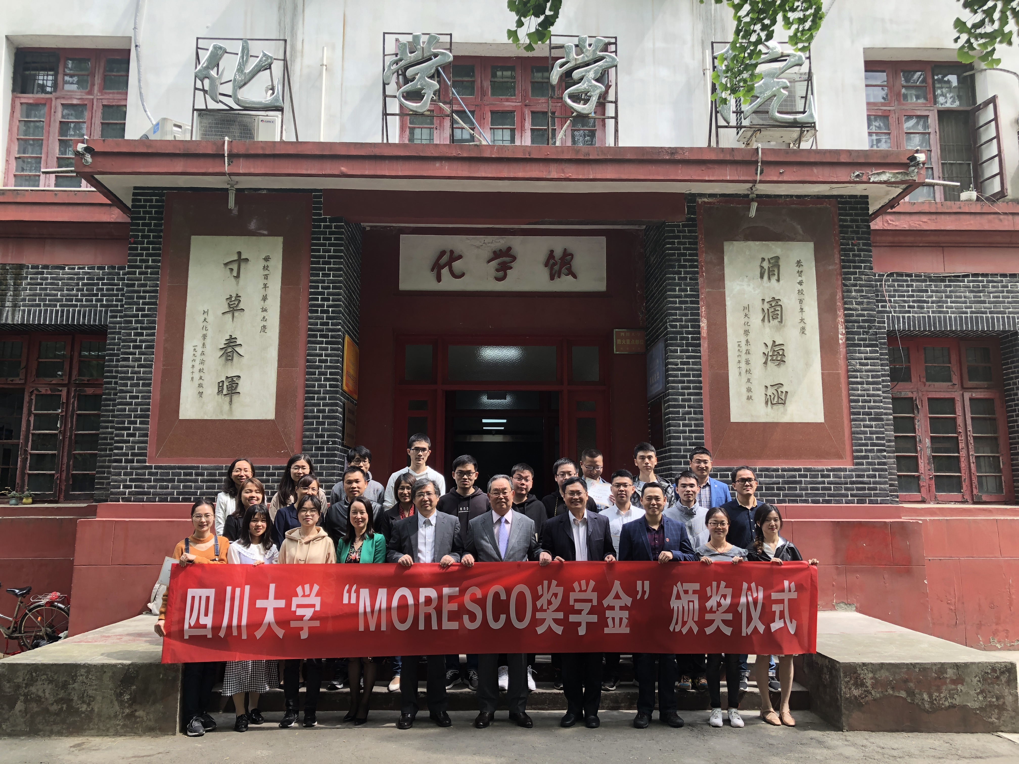2019年4月16日上午10:30,四川大学“MORESCO”奖学金颁奖仪式在四川大学望江校区化学馆122会议室隆重举行。株式会MORESCO代表取缔役会长CEO赤田民生先生,无锡莫莱斯柯贸易有限公司,莫莱斯柯花野压铸涂料(上海)有限公司董事长刘英进先生,无锡德松科技有限公司研发科长杨帆女士, 四川大学对外联络办公室副主任、校友总会副秘书长、教育基金会副秘书长白鹏老师,英国正版365官方网站相关领导及老师,全体获奖同学参加此次颁奖典礼。