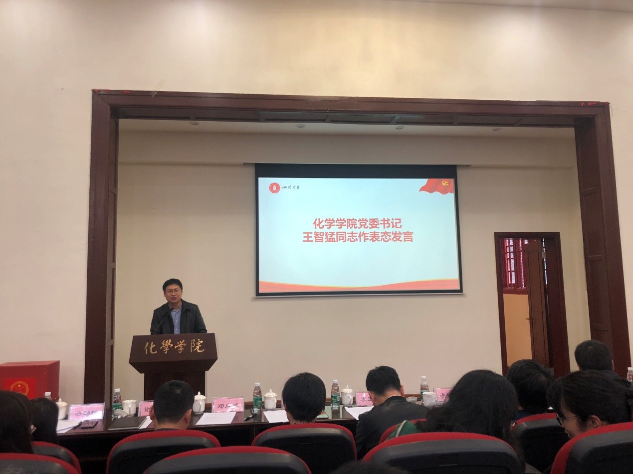 王智猛同志代表学院作表态发言。他表示,学院将坚持以习近平新时代中国特色社会主义思想为指导,迅速把思想和行动统一到党中央和教育部党组关于巡视巡察工作的重大决策部署上来,以最坚决的态度、最严格的标准、最有力的举措支持配合校党委巡察组开展工作,共同完成好这次巡察任务。努力做到以下四点:一是充分认识巡察工作的重要性和意义;二是全力支持,主动服务,积极配合巡察组开展工作;三是在巡察工作中,敢于暴露弱点,不回避问题,以巡察工作促进学院各项事业建设发展;四是要统筹兼顾,科学规划,积极和巡察组沟通,做到接受巡察和做好教学科研工作两不误。