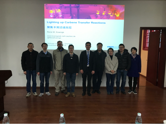 2019年11月21日上午10点,应四川大学化学学院邀请,德国亚琛工业大学Koenigs教授在化学馆321会议室做了题为 “Lighting up carbene transfer reactions” 的学术报告。此次报告由英国正版365官方网站余达刚教授主持,刘小华教授、周向葛教授、Jason Chruma教授、曾小明教授、郑柯教授和付海燕教授等老师及学生参加了此次报告。