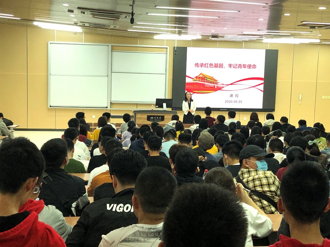 2020年9月25日下午,在四川大学江安校区综合楼307室,英国正版365官方网站党委书记谢均老师为学院2020级新生开展题为《传承红色基因,牢记青年使命》的入学教育讲座。我院2020级全体新生聆听了此次讲座。