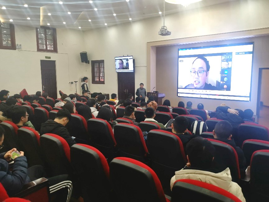 确良各年级同学开展个人自我介绍与交流分享。17级同学详细分享了在保研、进入专业实验室的经历,并提出了中肯的建议,19级同学代表分享课业学习方面的经验对20级同学进行了定向解答。