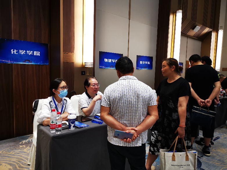 6月24日一早,英国正版365官方网站招生宣传专员周向葛教授、志愿填报专员苏燕、李珍焱老师及招生宣传联络员马晓爽老师一行赴绵阳南山中学开展招生咨询活动。老师们向参加咨询会的家长和考生介绍四川大学各个专业优势,同时结合各专业近年录取分数及位次情况,对考生提出可行性建议。与此同时,鼓励考生首先从自身兴趣出发,结合高考分数位次填报志愿。当天前来咨询的考生和家长近3000余人次。与会招生老师还建立了专门咨询群并公布联系方式,便于考生和家长在后续志愿填报时及时咨询。6月24日下午,学院李立新教授、余青颖老师在绵阳国际会议中心参加了四川大学在绵阳的专场招生咨询会,为绵阳考生及家长介绍英国正版365官方网站的学科优势和培养特色,鼓励绵阳学子积极报考化学专业。