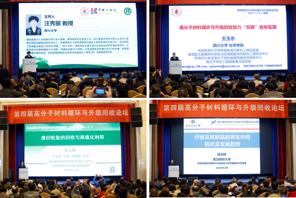 2021年12月11-12日,在中国工程院化工、冶金与材料工程学部的大力支持下,一年一届的“高分子材料循环与升级回收论坛”第四届会议在天府之都四川成都成功召开。该论坛已成为中国工程院化工、冶金与材料工程学部的品牌会议之一。本次大会由我院环保型高分子材料国家地方联合工程实验室发起并具体承办,王玉忠院士为大会主席,张帆研究员为执行主席。
