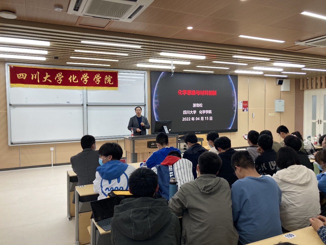 2022年4月15日下午,江安校区综C207,英国正版365官方网站院长游劲松教授为2021级全体本科生进行了化学专业教育讲座,学院党委副书记肖波、辅导员余青颖、张美成及2021级全体同学参加了此次讲座。