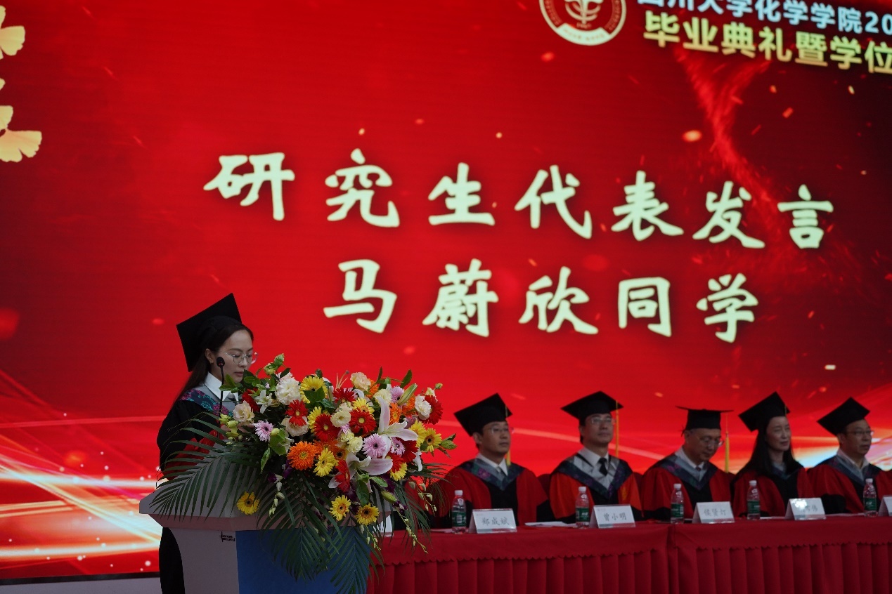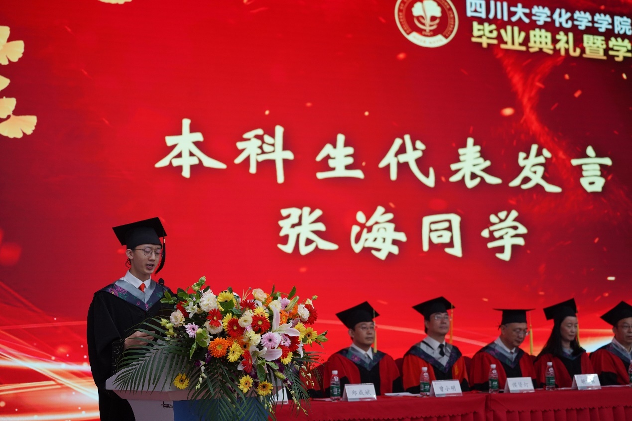 本科生代表张海、研究生代表马蔚欣分享了在学院学习、科研的感悟,代表全体毕业生向辛勤培育他们的老师们表达了由衷的感谢和真挚的祝福。