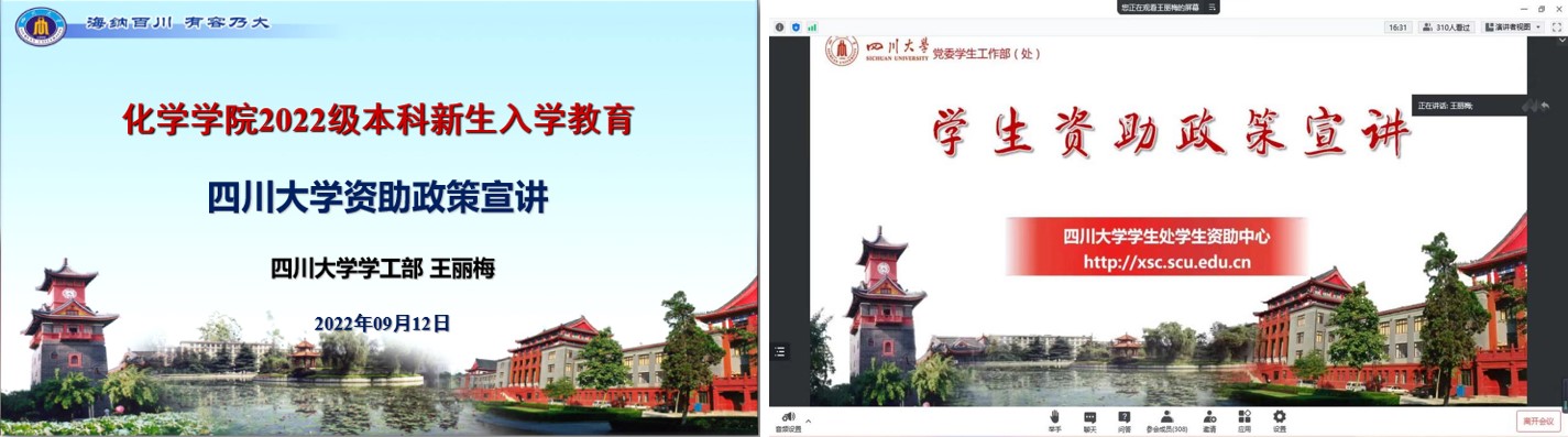 为积极响应国家和学校号召,切实保证各类、各项资助政策落到实处,解决家庭经济困难同学的后顾之忧,2022年9月12日上午,英国正版365官方网站通过线上的形式召开了四川大学资助政策宣讲会,学工部王丽梅老师担任主讲,英国正版365官方网站辅导员张若一老师以及2022级本科新生参加了本次活动。