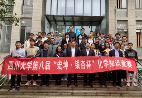 最后,王琦先生宣布四川大学第九届“宏坤•银杏杯”化学知识竞赛正式开幕。颁奖仪式结束后,到场嘉宾与获奖同学合影留念。