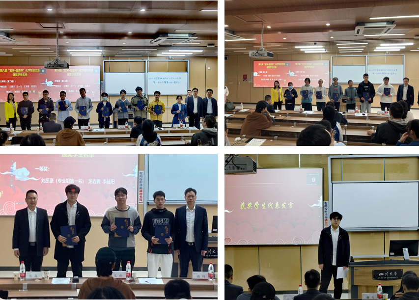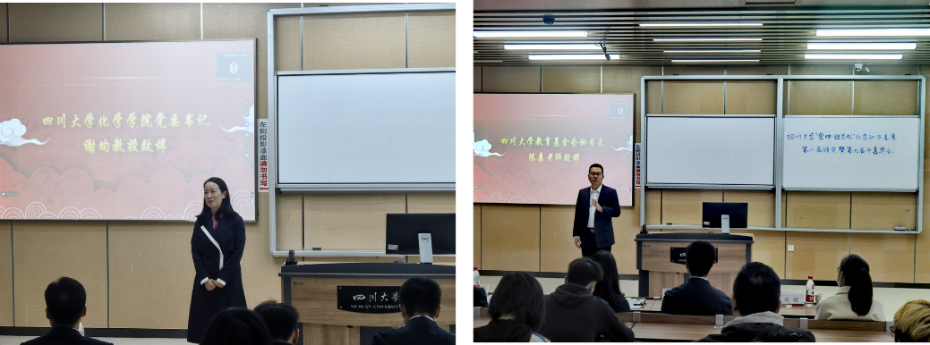 王琦先生致辞,表达了对同学们的殷切希望,鼓励同学们继续努力学习,将来为国家出力,为母校争光,希望从四川大学能走出更多的化学人才。