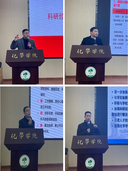 随后,肖波副书记和几位副院长就各自分管的工作进行年度工作述职。肖波副书记对2022年学生工作和成绩亮点进行了总结,作为纪委书记,还为全院老师就科研经费使用中的廉洁风险问题做了讲解。马利建副院长就研究生培养和科研管理服务工作进行了总结,同时对今年基金申报工作做了了布置。郑成斌副院长就加强本科教育教学和人才培养、课程队伍建设等方面进行了总结。李坤副院长就实验室安全和消防安全工作情况进行了总结,并对寒假和下学期的相关工作提出要求。
