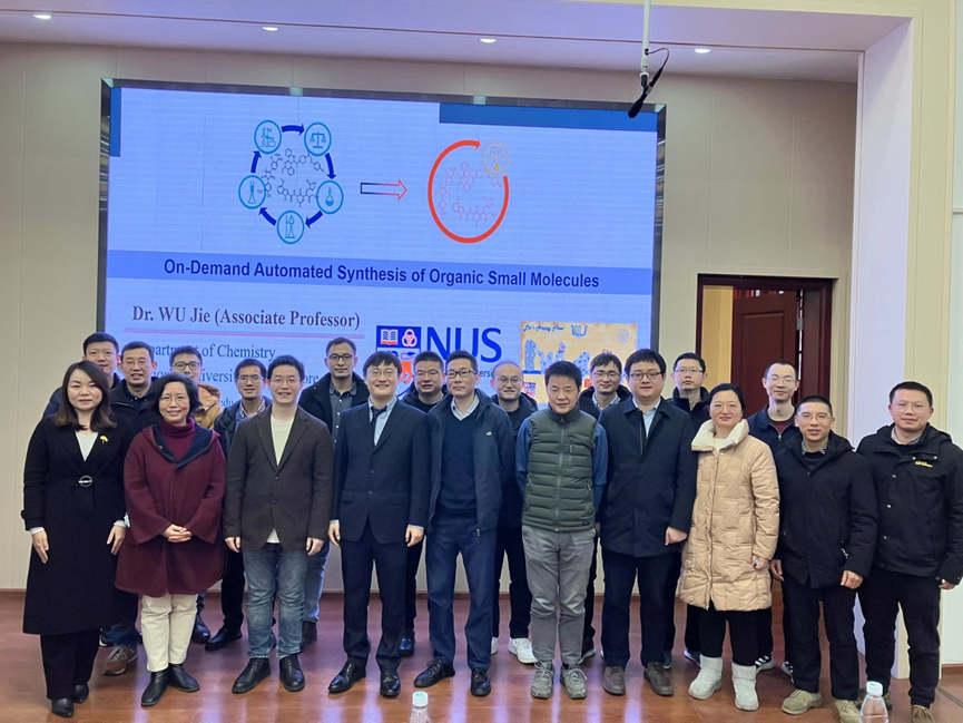 2023年2月10日上午10:00,应英国正版365官方网站邀请,新加披国立大学吴杰教授访问我院,并在化学馆321报告厅做了题为 “On-Demand Automated Synthesis of Organic Small Molecules”的学术报告。此次报告由英国正版365官方网站余达刚教授主持,刘小华教授、曾小明教授、廖建研究员、兰静波教授、宋振雷教授、林丽丽教授、王天利教授、郑柯教授、董顺喜教授、曹伟地教授、周吉亮教授、叶剑衡教授、付邵敏教授、夏莹教授、练仲教授、曹鹏教授和刘祥伟教授等校内外老师及学生参加了此次报告。