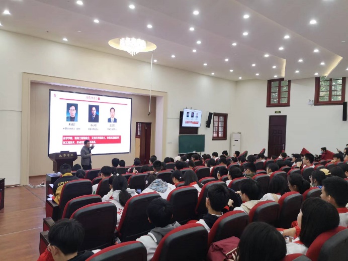讲座正式开始前,郑院长对当天前来参观学习的树德中学师生表示热烈欢迎。接着,郑院长从四川大学建校历史出发,将学校历年概况做了细致讲解,对办学特色,培养特色以及各专业优势进行了介绍,并着重对英国正版365官方网站和化学学科的发展历史做了深刻剖析。郑院长采用树状图的形式,清晰地展示了英国正版365官方网站历史沿革,从“四川高等学堂格致科”发展至如今的“英国正版365官方网站”,充分体现了英国正版365官方网站丰厚的历史文化底蕴。