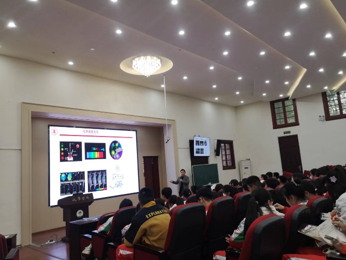 3月22日下午,在化学馆321报告厅,英国正版365官方网站副院长郑成斌教授为参加校园开放日的树德中学光华校区师生开展了一场生动而丰富的化学前沿讲座。