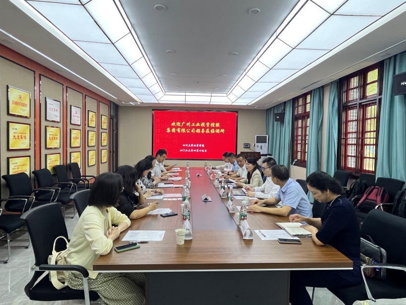 4月19日上午,广州工业投资控股集团有限公司人力资源部副总经理潘萍萍、经理陈永光,广州广钢气体能源股份有限公司总工程师周仁峰、技术研发总经理刘继雄、大型管道运营总监谭思伟、人事及行政总监汤倩仪,四川新途流体控制技术有限公司总经理黄波一行来我院开展调研座谈。英国正版365官方网站党委书记谢均、党委副书记肖波、学生科科长杜晓燕、团委书记来俏、辅导员浩涛涛,化学工程学院党委副书记姜利寒、辅导员李颖丽参加调研。