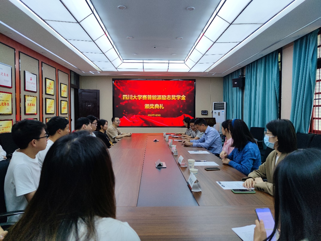 2023年5月5日下午,2021-2022年度四川大学“赛普能源励志奖学金”颁奖仪式在化学馆122会议室举行。成都赛普能源股份有限公司副总经理陈小林、董事长助理陈雨、四川大学化学工程学院党委副书记姜利寒、英国正版365官方网站党委副书记肖波、辅导员及获奖同学参加本次会议。颁奖仪式由肖波老师主持。