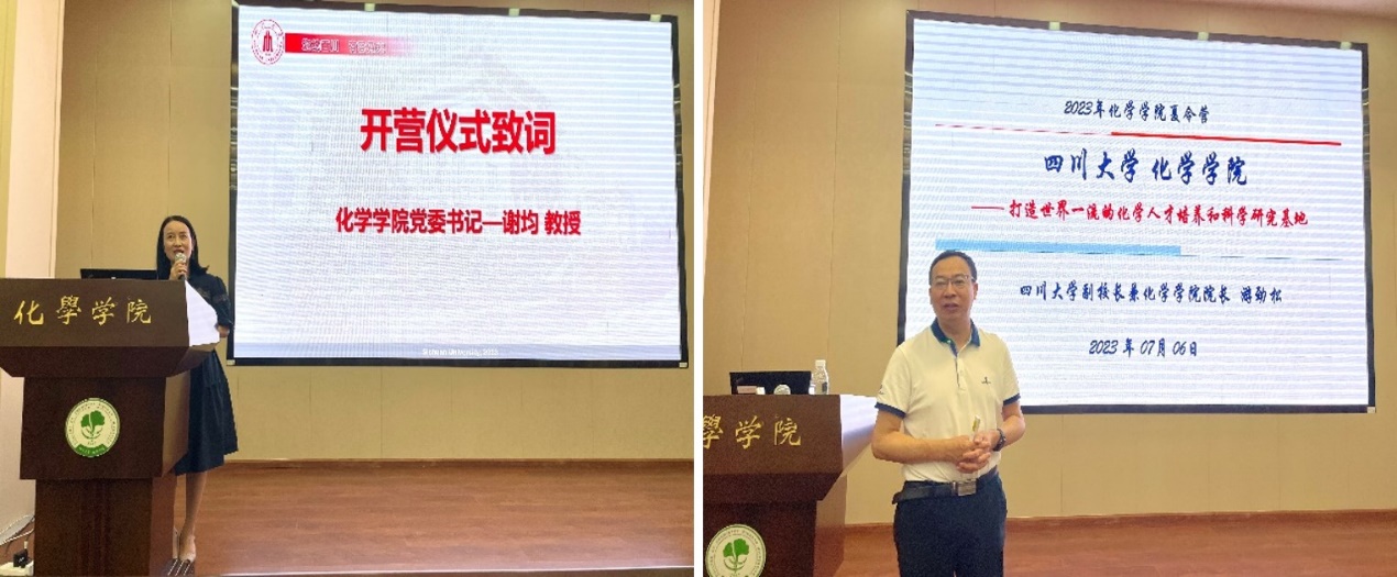 在开营仪式上,学院党委书记谢均代表学院致辞,表达了对营员们热烈的欢迎和祝贺,并介绍了此次夏令营营员的选拔流程及基本情况。她鼓励各位营员利用好夏令营的机会多多交流,深入了解川大化学学科,为将来进一步深造做好准备。学校副校长兼英国正版365官方网站院长游劲松从学院的历史沿革、师资力量、学科方向、研究领域、科研成果、办学条件等方面全面介绍了英国正版365官方网站。他希望各位营员能在本次夏令营活动中更多的了解英国正版365官方网站,并欢迎同学们来到英国正版365官方网站继续深造。