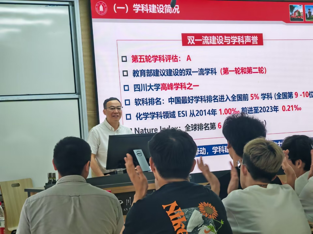 首先,游劲松院长从英国正版365官方网站历史沿革、学院发展与建设、人才培养、知名校友等方面全方位介绍了英国正版365官方网站,让同学们更加深入了解学院情况,展现了川大化学人勤耕不辍,勠力同心的精神风貌。