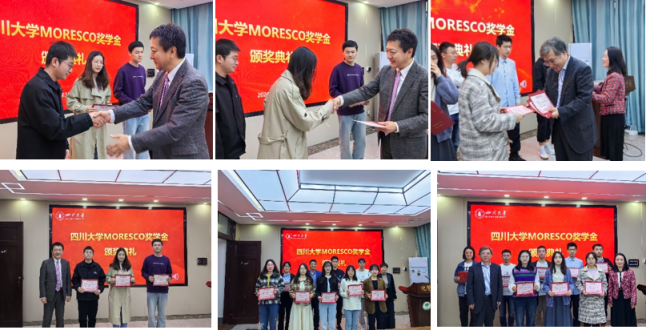 2024年3月27日上午,2022-2023年度MORESCO奖学金颁奖典礼在化学馆122会议室隆重举行。株式会社MATSUKEN社长大村洋一,株式会社MORESCO执行役员、莫莱斯柯贸易(浙江)有限公司、莫莱斯柯(浙江)功能材料有限公司董事长刘英进,莫莱斯柯中国研发中心经理杨帆,英国正版365官方网站党委书记谢均,党委副书记肖波,辅导员以及获奖的同学参加了此次颁奖典礼。颁奖典礼由肖波老师主持。