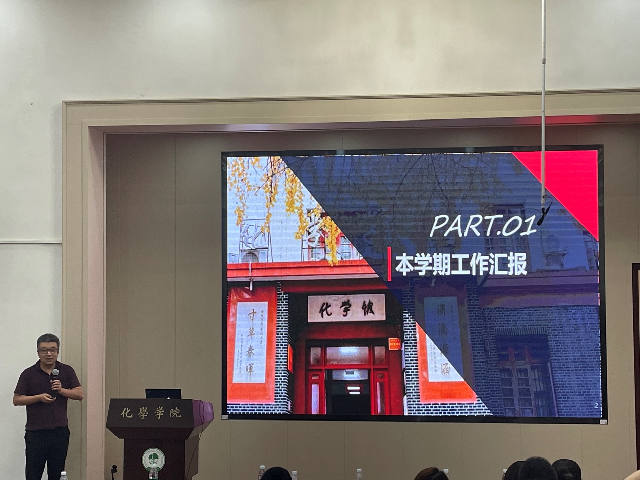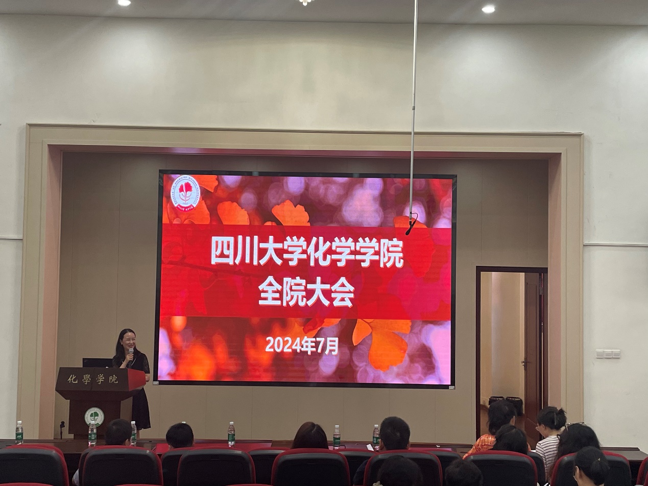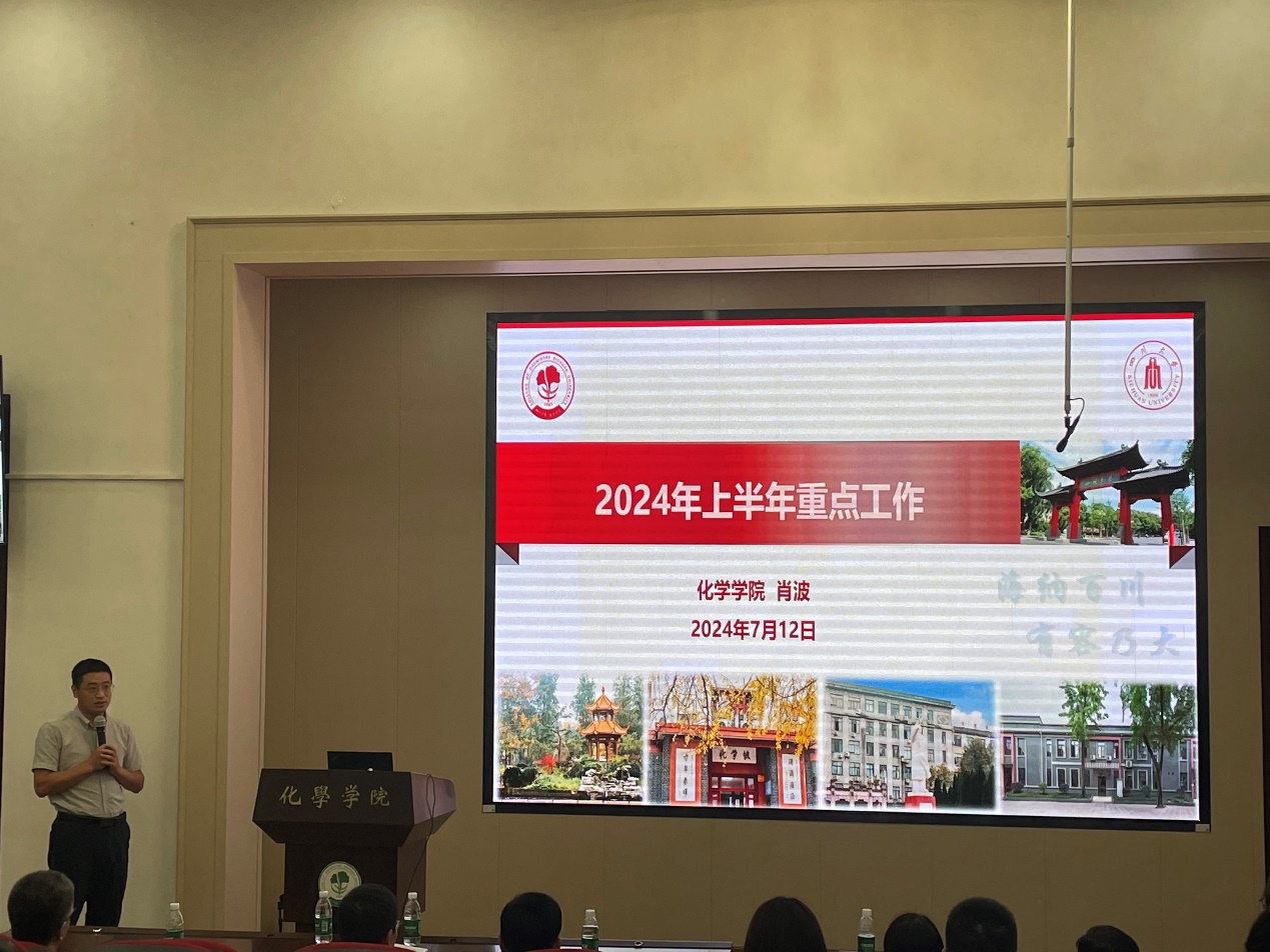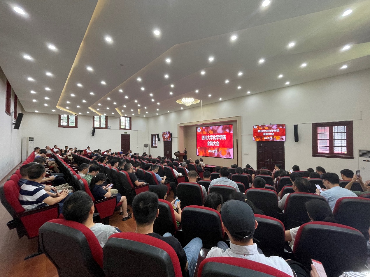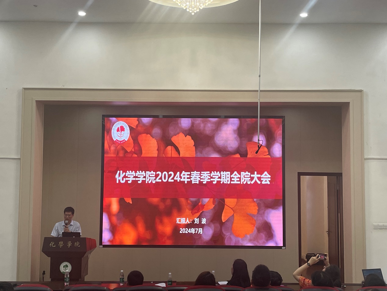在全院大会上,刘波院长报告了学院在学科建设、人才队伍、学生培养、科学研究、管理服务等各项工作中取得的成效,并对推进化学学科进ESI万分之一学科的目标进行了重点的解读,对下一阶段人才引进工作做了布置,对暑期实验室安全工作提出了要求。