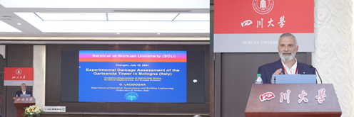 (Giuseppe Lacidogna院士作题为“Experimental Damage Assessment of the Garisenda Tower in Bologna (ltaly)”的会议报告)