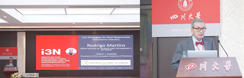 (Rodrigo Martins院士作题为“Eco-Strategies for Next Responsible Electronics Industry”的会议报告)