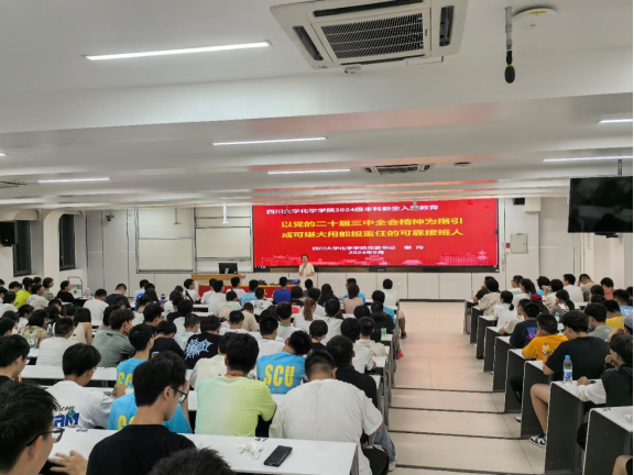 2024年9月12日,英国正版365官方网站党委书记谢均教授在江安校区综合楼C107,为我院2024级本科新生带来入学教育讲座——“以党的二十届三中全会精神为引领,成可堪大用能担重任的可靠接班人”。2024级辅导员侯鹏飞老师和我院2024级全体本科新生参加此次讲座。