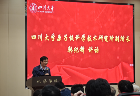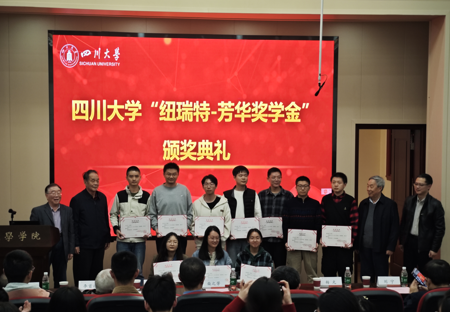 韩纪锋副所长对纽瑞特公司多年来对四川大学的支持表示感谢。他提到,今年是新中国第一颗原子弹爆炸成功60周年、第一艘核潜艇正式入编50周年,在这个特殊年份获得“纽瑞特-芳华”奖学金对同学们来说具有特别的意义。他希望同学们能够继续在国家和人民需要的领域开拓创新。