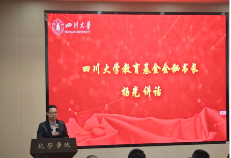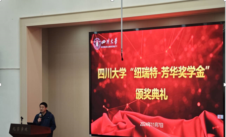 四川大学教育基金会秘书长杨光代表学校向柴院士及纽瑞特公司多年来的支持表示感谢。他鼓励获奖学生铭记奖学金背后的情怀和精神,不断成长进步。
