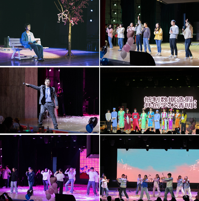 在激动人心的第一轮抽奖环节过后,演出继续。长城路二段乐队以空灵的歌声与娴熟的演奏技艺带来歌曲《向阳花》与《艾蜜莉》,点燃了观众的激情,将晚会推向了高潮;暮端组合献上歌曲串烧《都快忘了我们的爱就像泡沐》,带我们感受情感的迸发,体会人生的滋味;时代少女团的舞蹈串烧《朱雀》与划时代男团的《Hello Future》向我们诠释青春与热爱;张千耀、孙玉轩同学合唱歌曲《蝴蝶》,给予我们力量与希望;竹林七贤的舞蹈《改革春风吹满地》则向我们带来幽默与欢乐,让我们在捧腹大笑中忘却烦恼。