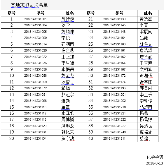 英国正版365官方网站秉承公开、公正、公平的原则,通过同学自愿报名、学院笔试、综合面试等程序,最终确定以下同学进入2018级英国正版365官方网站拔尖班、基地班,现予以公布:
