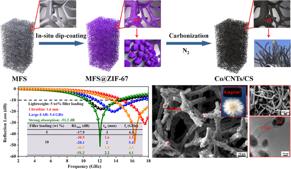 36. Na Yang; Zi-Xuan Luo; Guo-Rui Zhu; Si-Chong Chen; Xiu-Li Wang; Gang Wu*; Yu-Zhong Wang*; Ultralight Three-Dimensional Hierarchical Cobalt Nanocrystals/N-Doped CNTs/Carbon Sponge Composites with a Hollow Skeleton toward Superior Microwave Absorption, ACS Applied Materials & Interfaces, 2019, 11: 35987-35998.
