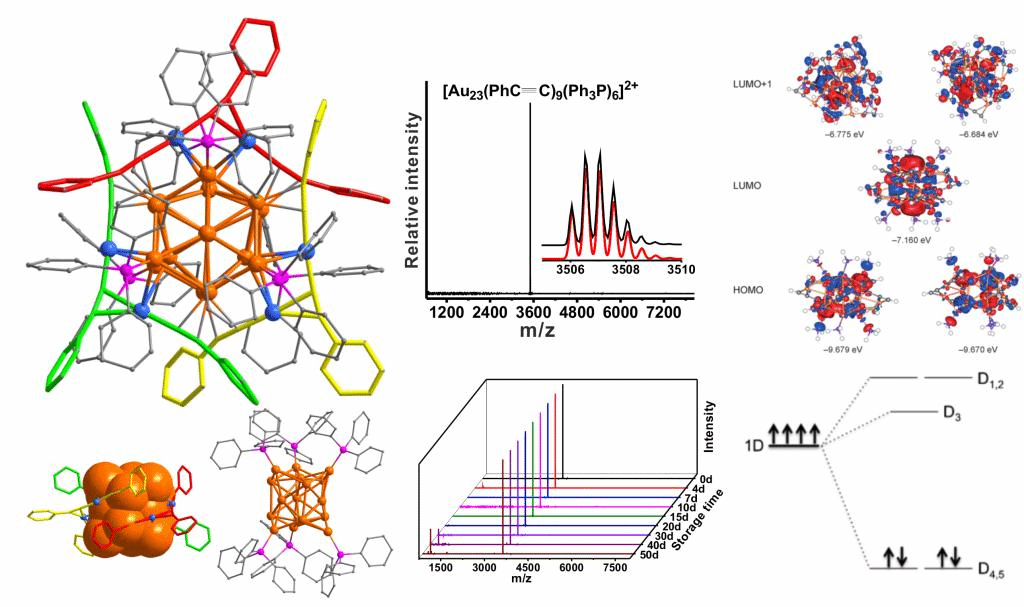 9. Xian-Kai Wan, Shang-Fu Yuan, Qing Tang, De-En Jiang*, and Quan-Ming Wang*. Alkynyl-Protected Au23 Nanocluster: A 12-Electron System, Angew. Chem. Int. Ed. 2015, 54, 5977-5980.