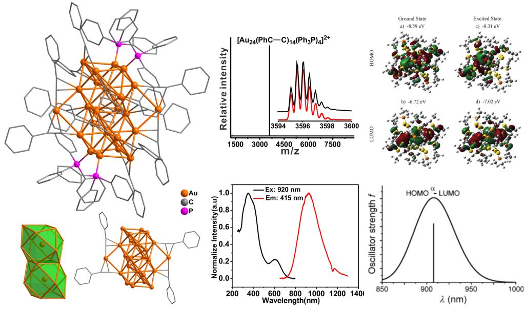 8. Xian-Kai Wan, Wen-Wu Xu, Shang-Fu Yuan, Yi Gao*, Xiao-Cheng Zeng, and Quan-Ming Wang*. Near Infrared Emissive Alkynyl-Protected Au24 Nanocluster, Angew. Chem. Int. Ed. 2015 54, 9683-9686.