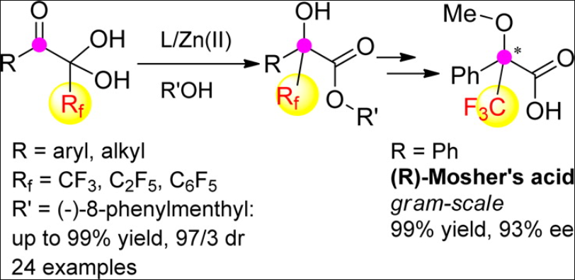 (1) Wang, P.; Feng, L.-W.; Wang, L.-J.; Li, J.-F.; Liao, S.; Tang. Y. Asymmetric 1, 2-Perfluoroalkyl Migration: Easy Access to Enantioenriched α-Hydroxy -α-perfluoroalkyl Esters Journal of The American Chemical Society, 2015, 137, 4626.