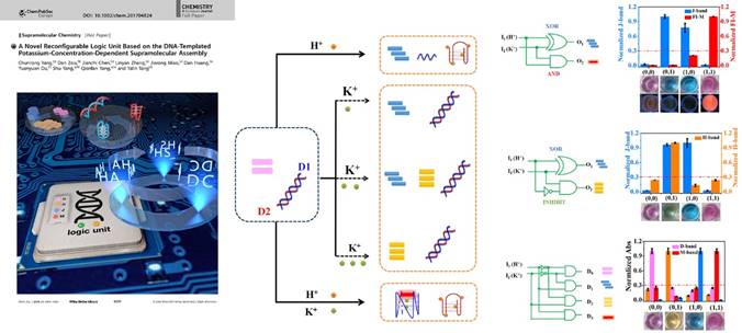 3. Yang Chunrong; Zou Dan; Chen Jianchi; Zhang Linyan; Miao   Jiarong; Huang Dan; Du Yuanyuan; Yang Shu*; Yang Qianfan*;   Tang Yalin, A novel reconfigurable logic unit based on the DNA-templated   potassium-concentration-dependent supramolecular assembly. Chemistry-A   European Journal, 2018, 24, 4019-4025 . (Frontispice, Hot paper)