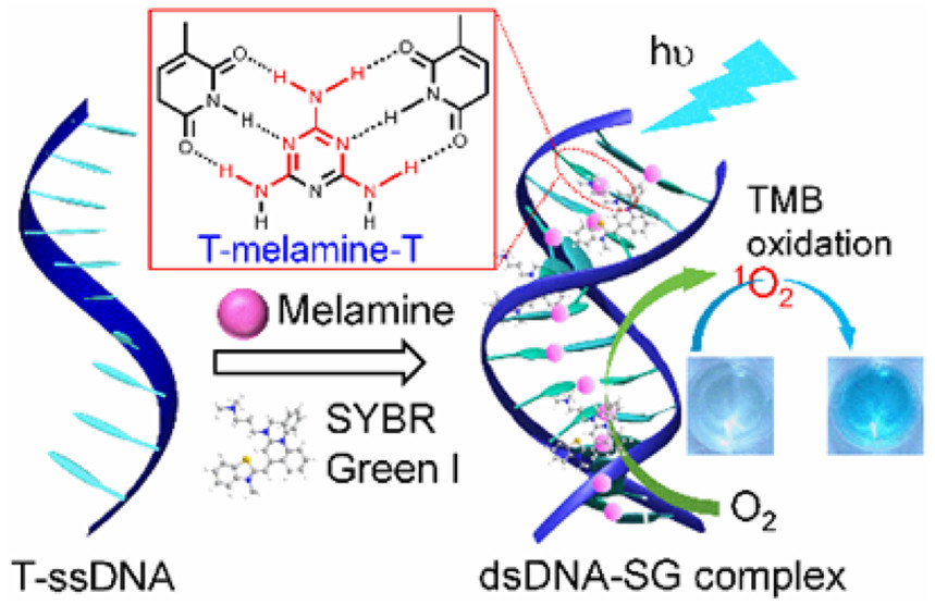 28. Hao Hu, Jinyi Zhang, Yu Ding, Xinfeng Zhang, Kailai Xu*, Xiandeng Hou, Peng Wu*, Modulation of the Singlet Oxygen Generation from the Double Strand DNA-Sybr Green I Complex Mediated by T-Melamine-T Mismatch for Visual Detection of Melamine. Anal. Chem., 2017, 89, 5101-5106.