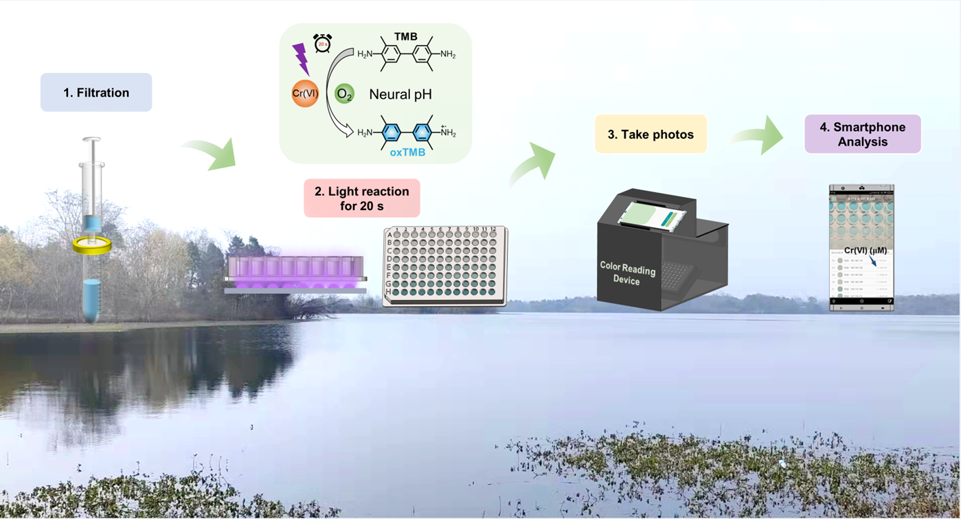 8. Jing Liao, Yuke Wu, Xueshan Chen, Huimin Yu, Yao Lin, Ke Huang*, Jinyi Zhang*, and Chengbin Zheng*, Light-triggered Oxidative Activity of Chromate at Neutral pH: A Colorimetric System for Accurate and On-site Detection of Cr(VI) in Natural Water. J. Hazard. Mater. 2022, 440, 129812.