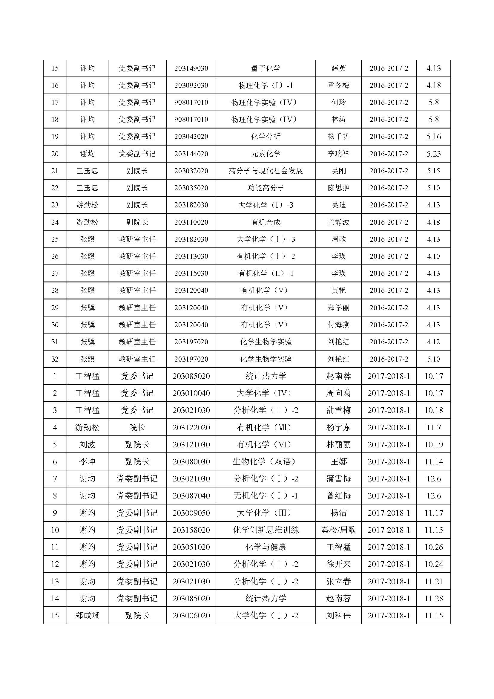 退休教师名单