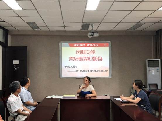2018年6月28日下午在四川大学望江校区化学馆122举行了我院2017-2018学年春季学期期末考试监考和试卷归档培训。教学科研科科长姜林老师、主考、监考老师和教学管理人员参加了此次的培训。姜林老师向大家强调了监考工作的重要性,指出监考工作是考试管理工作的重要组成部分,也是保障教学质量的重要环节,严格监考行为对建设学院良好学风的有积极的推动作用。随后,教务办公室向各位老师详细介绍了监考流程和考试作弊处理的流程。特别强调了主考老师和监考老师必须严肃考纪,提前20分钟,佩戴监考证到岗,切实做好试卷收发和证件检查等工作,坚决杜绝教学事故的发生。此次监考工作帮助我院监考老师明确监考职责和流程,以确保期末考试公平公正的进行。