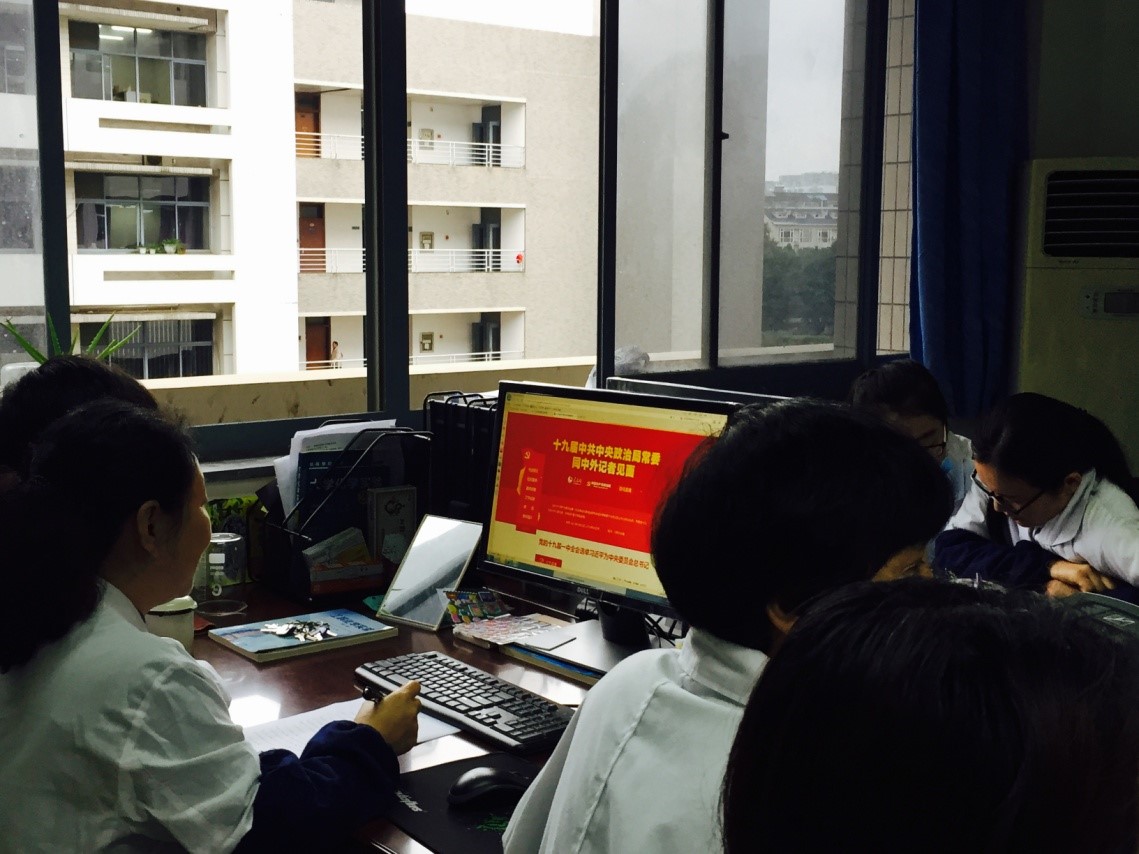 2017年10月,在中共十九大召开之际,化学实验教学中心党支部各位党员积极收看十九大直播。10月30日,我们组织大家集中,再次收看十九大相关视频,学习十九大相关政策。大家认真观看,用心学习,积极讨论,牢记习近平总书记强调的中国共产党人的初心和使命,紧密团结在党中央周围,高举中国特色社会主义伟大旗帜,解放思想,改革创新,锐意进取,埋头苦干,为实现党的十九大确定的目标任务而奋斗。