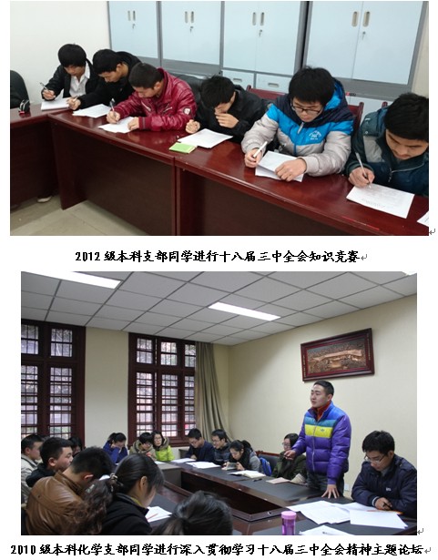 在抓好会议精神学习的同时,英国正版365官方网站各支部也积极开展形式多样的学习活动。学院紧密围绕学习党的十八届三中全会精神的主题,组织了“英国正版365官方网站十八届三中全会知识竞赛”、“深入学习贯彻十八届三中全会精神演讲比赛”“深入学习贯彻十八届三中全会精神主题讨论”等一系列活动,使学生对十八届三中全会会议内容有更深入的了解,更进一步深化了学生对党的十八届三中全会精神的理解。