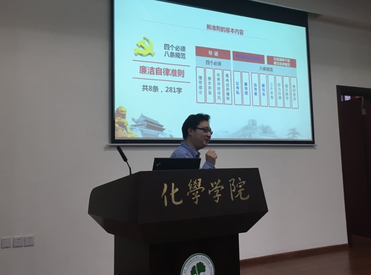 4月21日下午,四川大学廉政法规宣讲团在化学馆学术报告厅为我院党员举行了一场《中国共产党章程》、《中国共产党廉洁自律准则》和《中国共产党纪律处分条例》学习报告会。校纪委监察处张学龙副书记主持报告会并讲话。马克思主义学院张洪松老师作了专题宣讲报告。英国正版365官方网站党政领导、党支部书记和全体学生党员参加了学习报告会。
