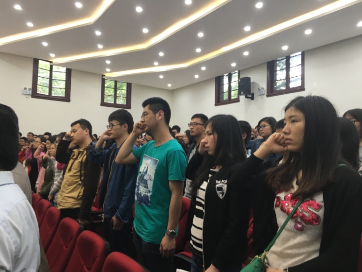 英国正版365官方网站党委书记王智猛老师首先对学校宣讲团的到来表示了热烈欢迎,张学龙副书记在讲话中介绍了此次宣讲的目的和意义。马克思主义学院的张洪松老师以《模范遵守准则条例,永做合格共产党员》为题,详细解读了《党章》、《准则》和《条例》。通过解读帮助广大党员准确理解掌握党规党纪和习近平总书记系列重要讲话精神,切实增强政治意识、大局意识、核心意识、看齐意识,做合格党员。在宣讲过程中,全体学生党员激情豪迈地再次重温了入党誓词,合唱了《三大纪律八项注意》,把宣讲会推向了高潮。