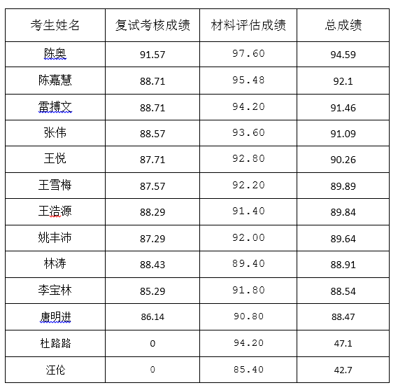 我院2019年“申请考核制”博士研究生成绩公示(见表一),公示期十个工作日。如对所公示的成绩有疑问或异议,请于公示期内向英国正版365官方网站教务办公室致电反映,电话:028-85410765。