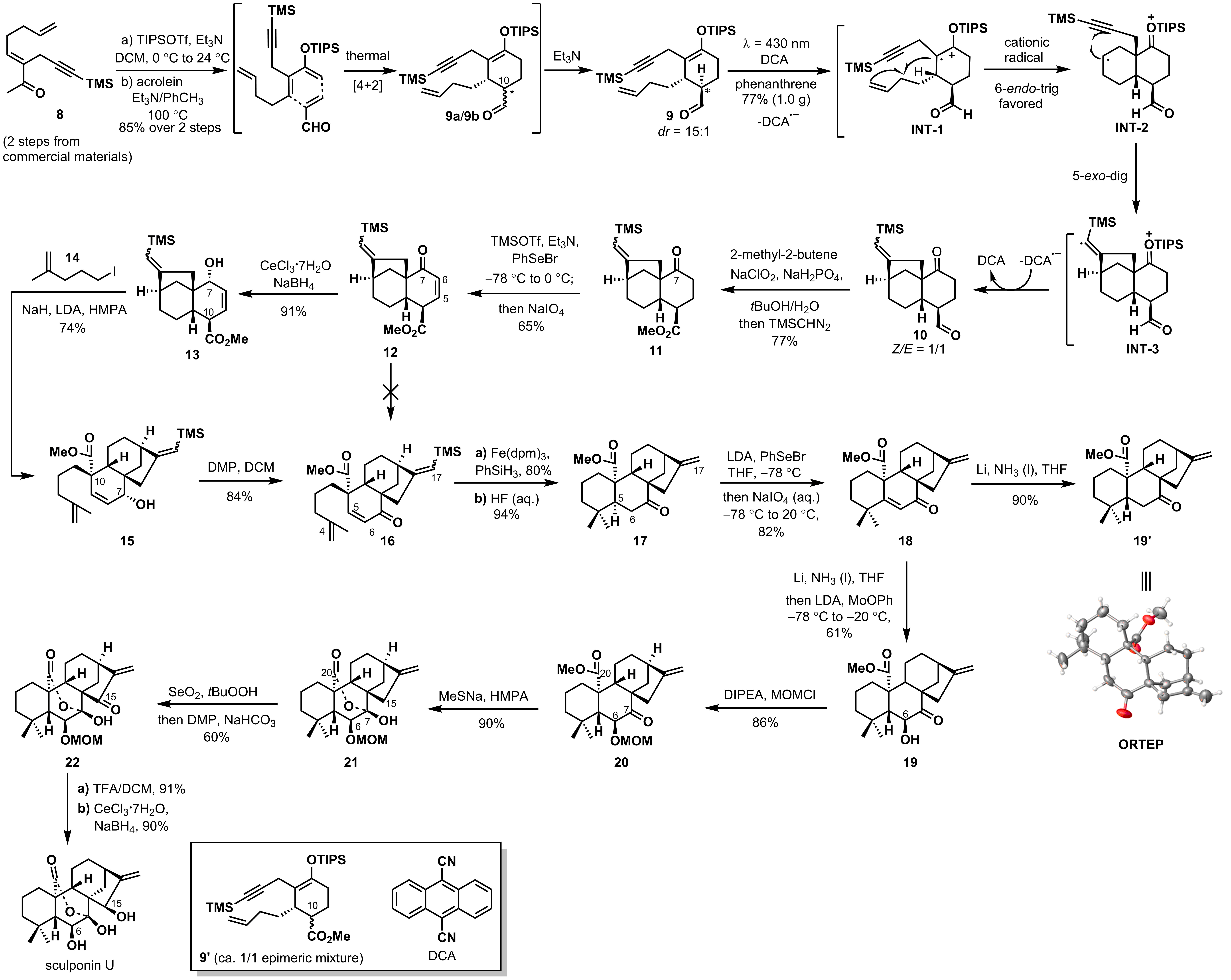 该研究成果以题为“Total Synthesis of Sculponin U through A Photoinduced Radical Cascade Cyclization”发表于《Angewandte Chemie International Edition》,原文链接:https://doi.org/10.1002/anie.202305516。四川大学为第一单位,英国正版365官方网站刘波教授、付绍敏特聘副研究员为本文共同通讯作者,英国正版365官方网站博士曹威为本文第一作者。特别感谢国家自然科学基金委、四川大学对研究工作的支持!