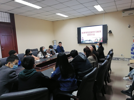 2021年3月12日下午,英国正版365官方网站党史学习教育动员会在化学馆103会议室举办。学院党政领导班子成员、党委委员、纪委委员、党支部书记和支委等参加了动员会。