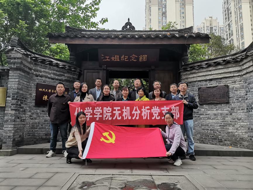 为庆祝中国共产党成立100周年,缅怀革命先烈,进一步强化党史学习教育成果,做到学史明理、学史增信、学史崇德、学史力行,英国正版365官方网站无机分析党支部于2021年4月9日在四川大学望江校区江姐纪念馆开展庆祝建党100周年重温入党誓词主题活动,支部全体党员参加了此次活动。