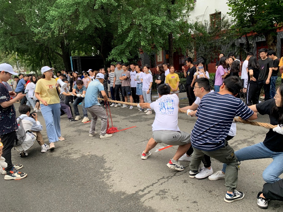 2021年6月18日上午,青春心向党,奋进新征程——英国正版365官方网站2021届毕业生拔河比赛在化学馆门口两颗百年银杏树下顺利举行。此次拔河比赛由杜晓燕老师主持,由辅导员、硕博士和本科同学组成了8个队伍参赛,浩涛涛老师担任裁判。