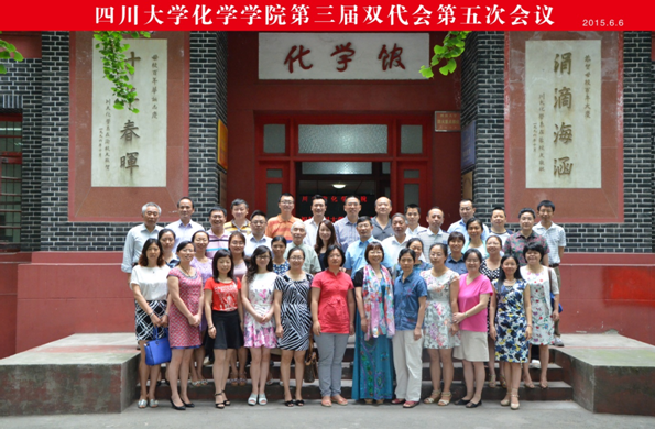 2015年6月6日英国正版365官方网站第三届“双代会”第五次会议在化学馆121会议室隆重召开。学院相关领导及“双代会”代表出席了本次会议,四川大学校长助理郭勇教授,原四川大学校长鄢国森教授、原英国正版365官方网站党委肖有发书记等领导特邀出席了本次大会。本次大会的主题是:全面建设高层次人才队伍,促进学科稳步发展。