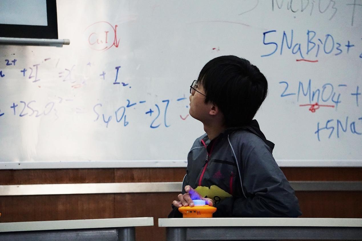本次决赛除了有选手们的激烈角逐,还有台下观众可参与的书写化学方程式的互动环节。在该环节中,选手及观众有幸聆听嘉宾鄢洪建老师对于化学方程式讲解与学习方法的介绍,收获良多。比赛期间,台下观众积极参与“最佳人气王”的投票活动,选出自己心中最有潜力夺冠的选手。